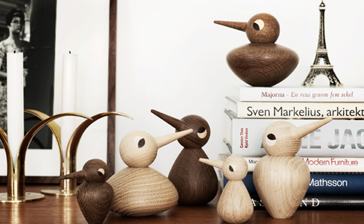 他于1959年所设计的简洁有机线条木鸟家族系列︰有三代同堂的鸟爸、鸟妈、鸟阿公、鸟阿嬷、还有鸟宝贝,虽然当年只有鸟宝贝问世,却已经在50年代的丹麦掀起一股木工艺术品的热潮,并引起世界各地设计界与媒体的青睐报导,成为当时收藏家的最爱。 如今,Architecmade公司让整个鸟家族大团圆,重新问世登场,你我怎能再错过这次收藏的机会。