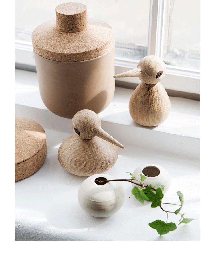 "这些优雅灵巧的鸟儿们诞生于丹麦的一个小镇,工匠们以成熟洗炼的工法,采用烟熏色及原色的橡木纯手工打造制作,整件作品没有用到任何衔接的钉子,每个环节步骤都蕴藏着精湛的工艺技巧,并细心严谨地一个步骤接一个,才能逐步将片片木材刻划成各个活灵活现,充满自由灵魂的鸟儿。