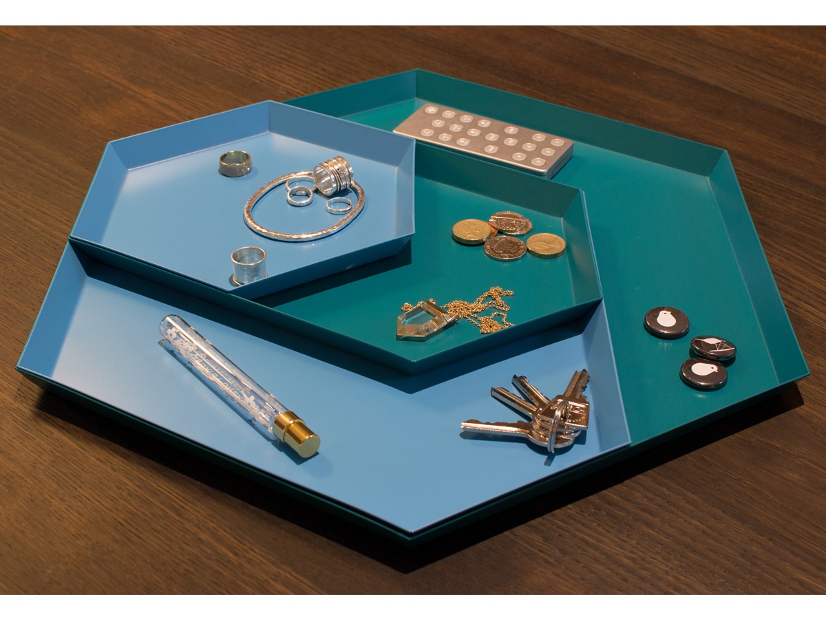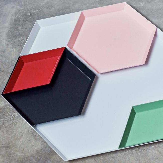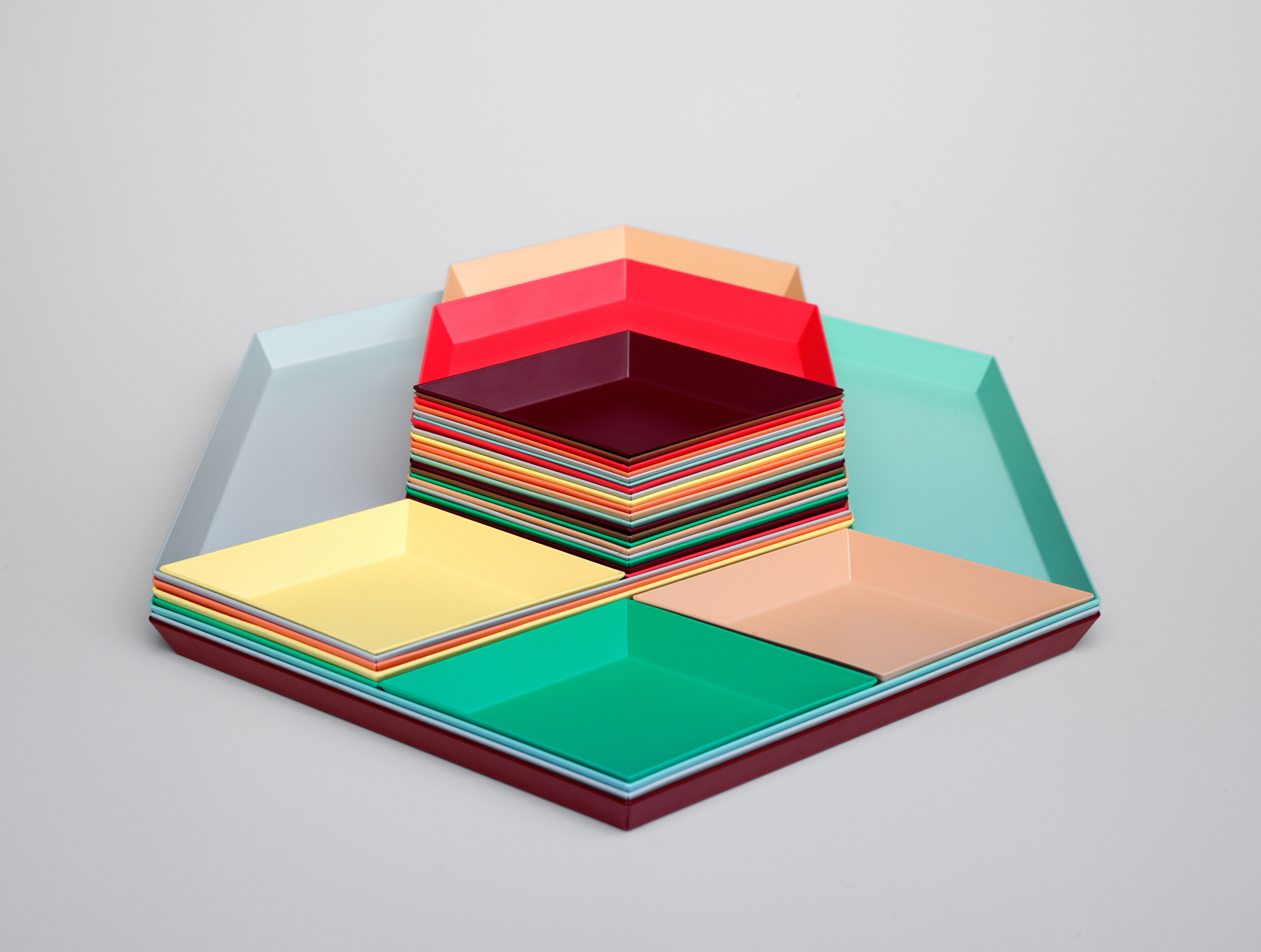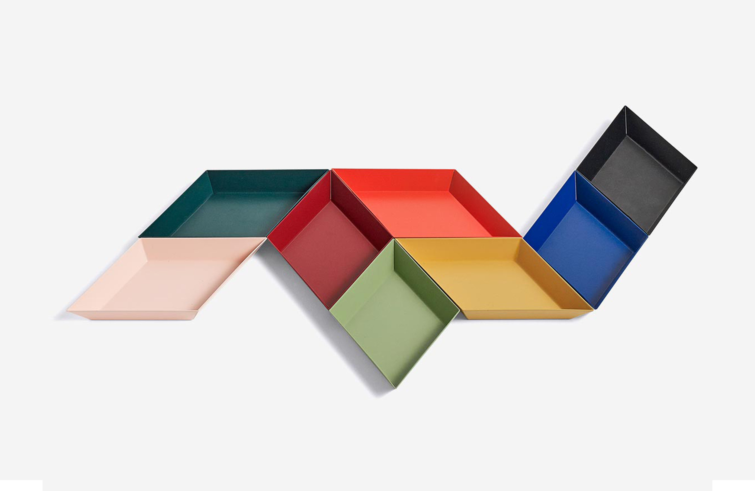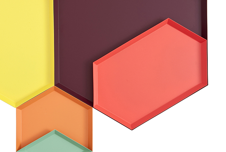 Clara von Zweigbergk的背景是一位平片安博anbo(中国),这点在她的Kaleido托盘的配色上就很显而易见了。在那里她的直觉感的色彩组合体现在不同的形状和色调上。这个系列的钢制几何形状的托盘可以单独使用,或者折叠在一起储存时也可以创造出不不同的想象力组合。
