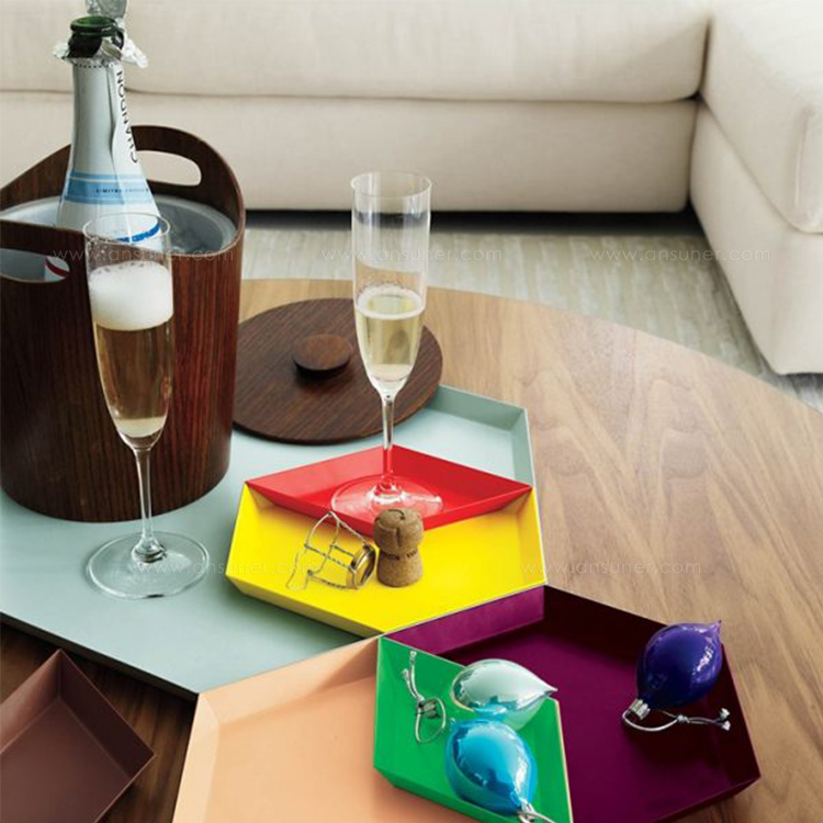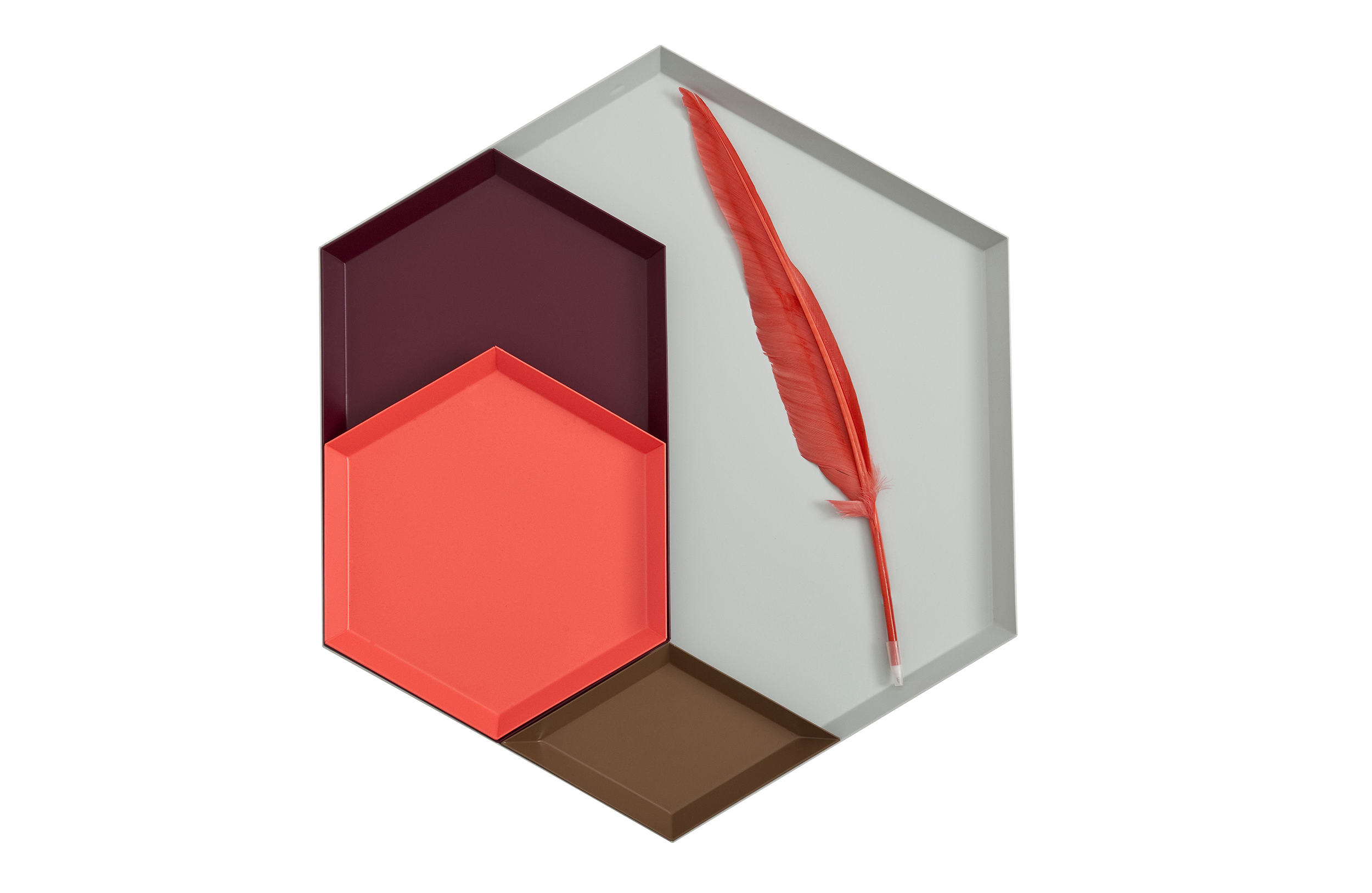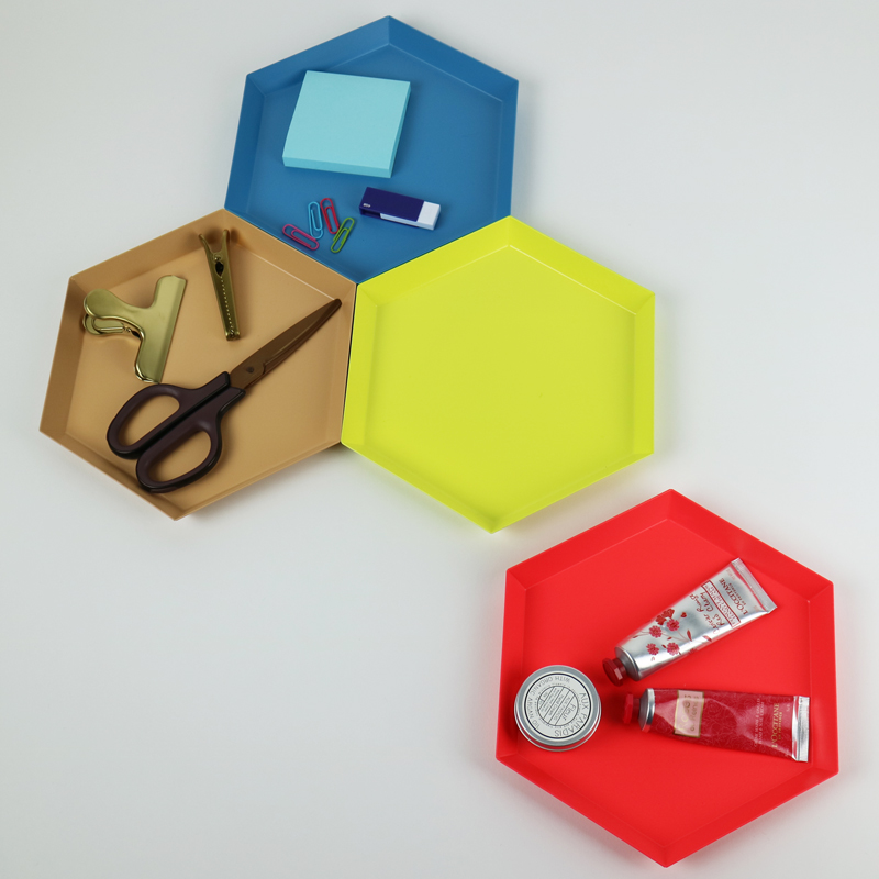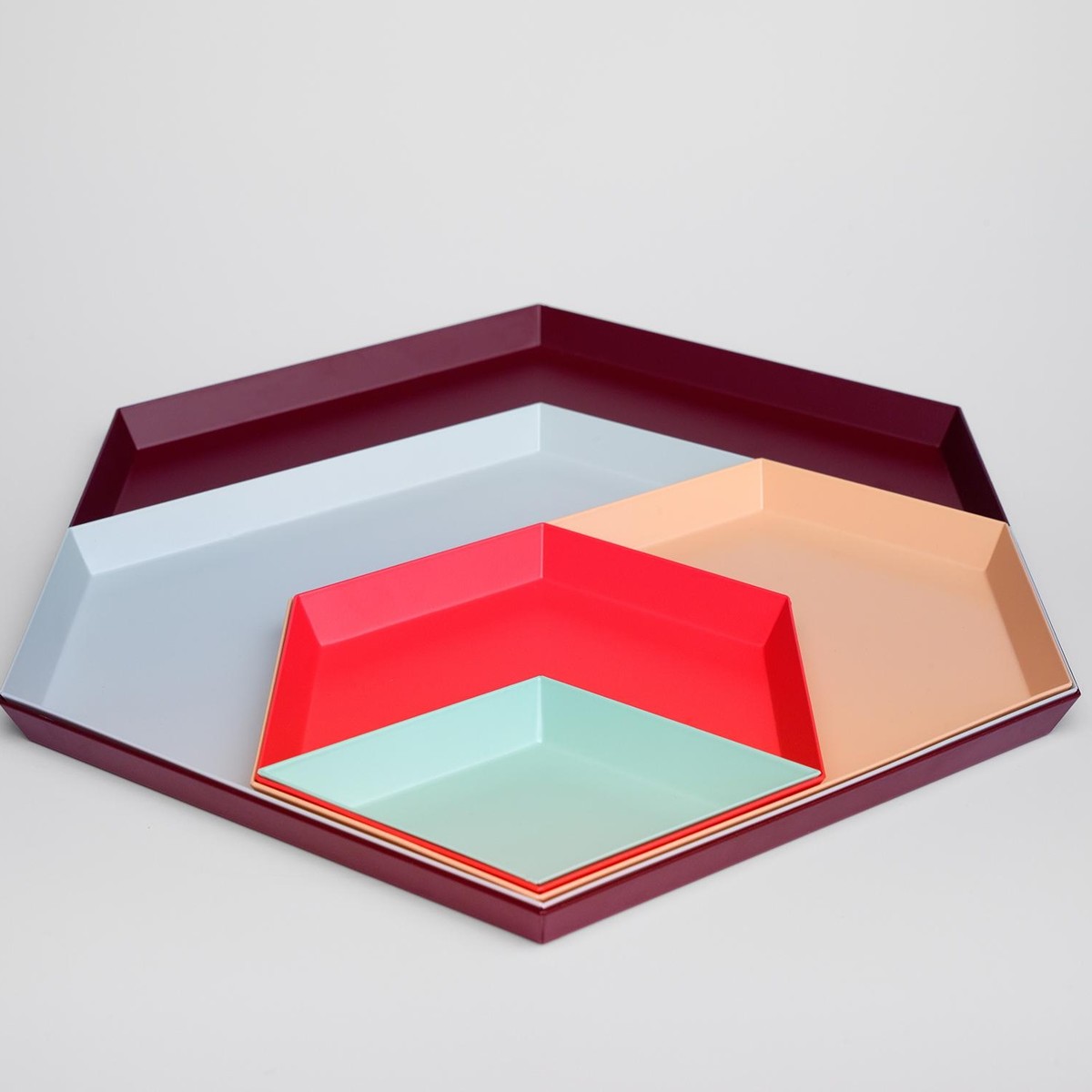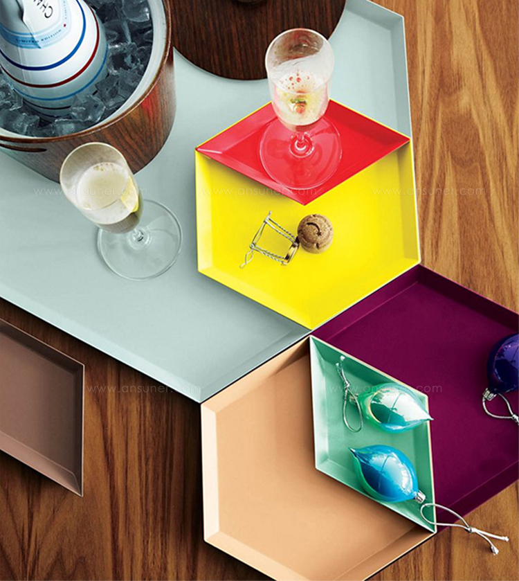 Clara von Zweigbergk的背景是一位平片安博anbo(中国),这点在她的Kaleido托盘的配色上就很显而易见了。在那里她的直觉感的色彩组合体现在不同的形状和色调上。这个系列的钢制几何形状的托盘可以单独使用,或者折叠在一起储存时也可以创造出不不同的想象力组合。