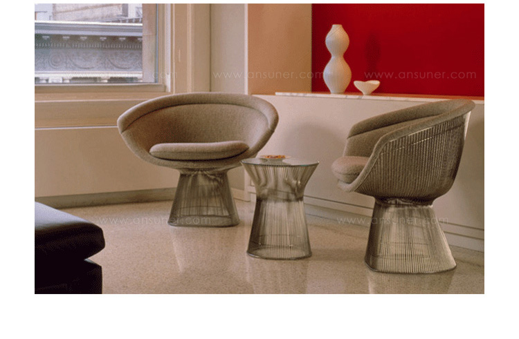 1966年榮獲 American Institute of Architects International Award 美國建築協會國際大獎的 Platner Chair,在設計師 Warren Platner 的創意下,將鋼絲雕塑轉化成一系列收藏級的傢俱,創造了現在被認為是當今時代的設計圖標。