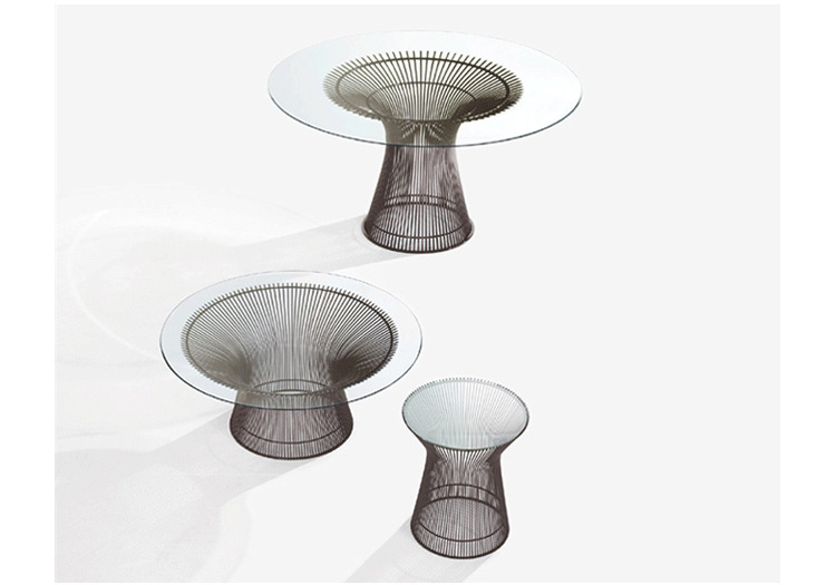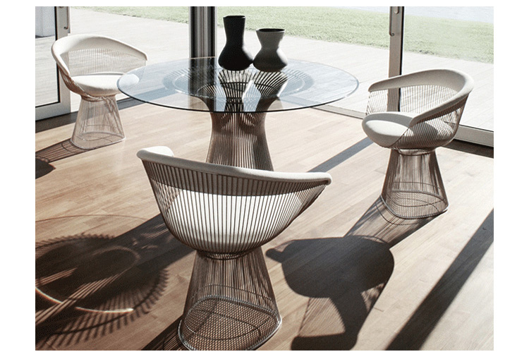 1966年榮獲 American Institute of Architects International Award 美國建築協會國際大獎的 Platner Chair,在設計師 Warren Platner 的創意下,將鋼絲雕塑轉化成一系列收藏級的傢俱,創造了現在被認為是當今時代的設計圖標。