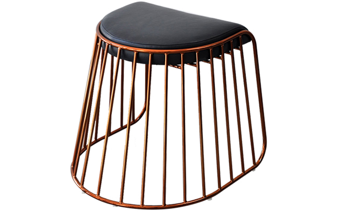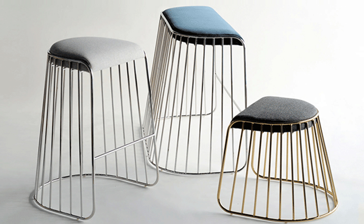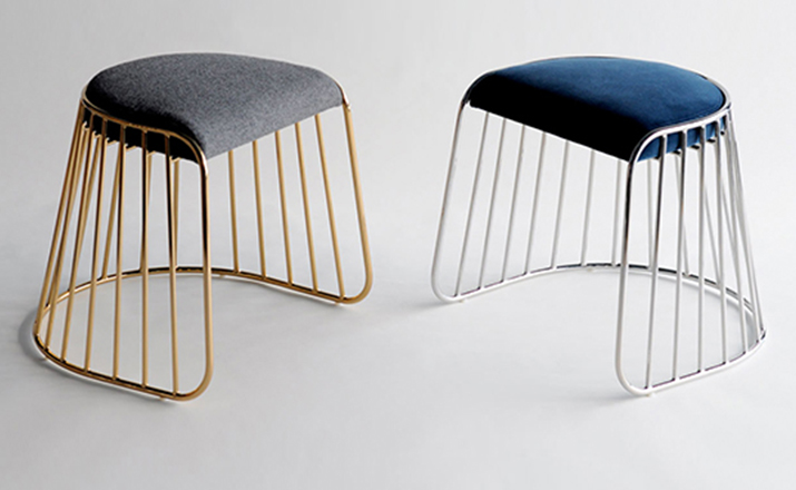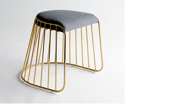 "The Bride's Veil Stool family’s unique language is meant as a graceful alternative to the archetypal stool.The strikingly elegant metal base is available in smoked brass, polished chrome,burnt copper,or powder coat,while the top is offered in COM upholstery.At every angle these stools offer a visual treat."