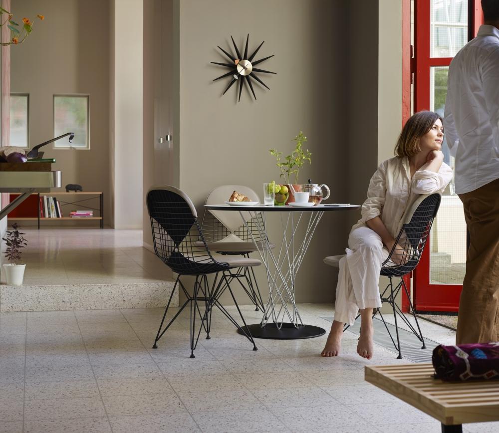 Charles & Ray Eames 1951 年發表的 Wire Chair 系列,以一片式有機網狀椅座,延伸變化出一系列不同椅腳及座墊搭配的單椅,這系列椅款輕巧透明的設計,在 60 年代可說是運用了當時最先進的技術來製作,靈感則是來自於鏤空的金屬收納籃,金屬條交織的椅座,彎曲的弧面不僅符合人體工學,在視覺上更具有穿透性。