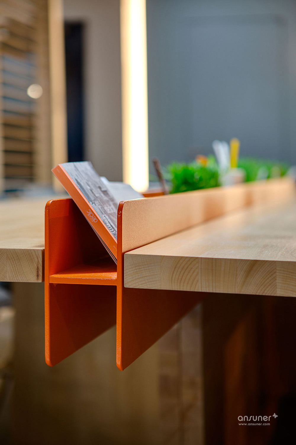 二楼的空间灵动而多元,这里规划了大量休闲交流空间:咖啡区、铺着软垫的窗台、一处大型阶梯式剧场休闲空间,可用于工作、聊天、聚会、简报或讲座等活动。