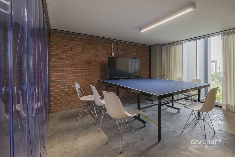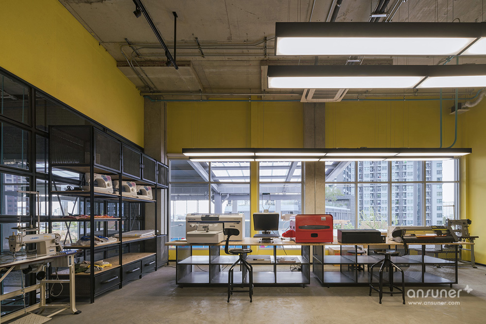 Hubba是泰国最早的联合办公平台之一,由Amarit与Charle Charoenphan兄弟在2012年创立,旨在为初创公司和独立经营者提供共享的社区工作环境。如今他们想要创建一个同之前完全不一样的新模式,于是Hubba与泰国最大的地产开发商Sansiri合作,在Sansiri所建造的住宅区的中心商场,打造了一处专供艺术家联合办公的社区Hubba-to。为了适应新的社区,Hubba提出将工作系统中的“制造”这一环节放大,以此为理念打造一个 “匠人空间”。该空间包括一些手工作坊如陶器、木工工作室、开放式烹饪厨房和摄影技术暗房等。Hubba-to还增加了用于讲座和演示的放映室,以及用于研讨会的讲习班。这样的目的意在广泛宣传他们的物联网科技,以及联合办公的共享哲学。