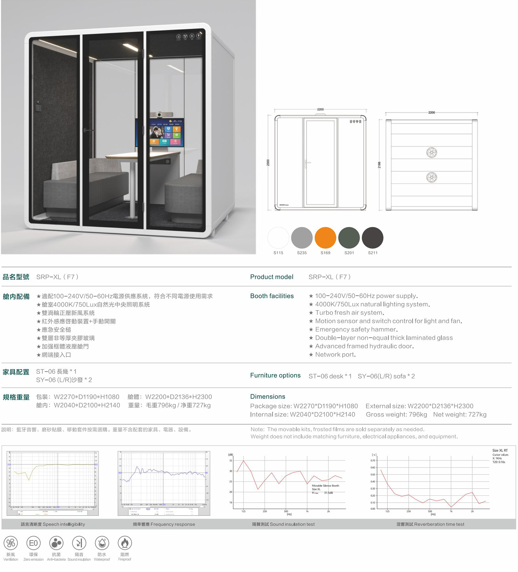 一个灵动的安静空间,满足您无限创想不传统的碳塑复合板、航空铝、隔声玻璃是它的主要组成,SOLIDWORKS软体力学建模让仓体组装仅需一种紧扣件,INSULMARSHALL ACOUSTIC 声学模拟设计准确预知并实现了舱体隔音和舱室音环境指标,它是一个强大,尽管它不是最完美的迷你空间,仓体采用可循环碳塑再生材料 SR系列 静音仓推崇低碳、简约、安全、实用主义优化非必要的功能和配置。从薄的全R角外观和互雅配色让它更精致、融入环境。