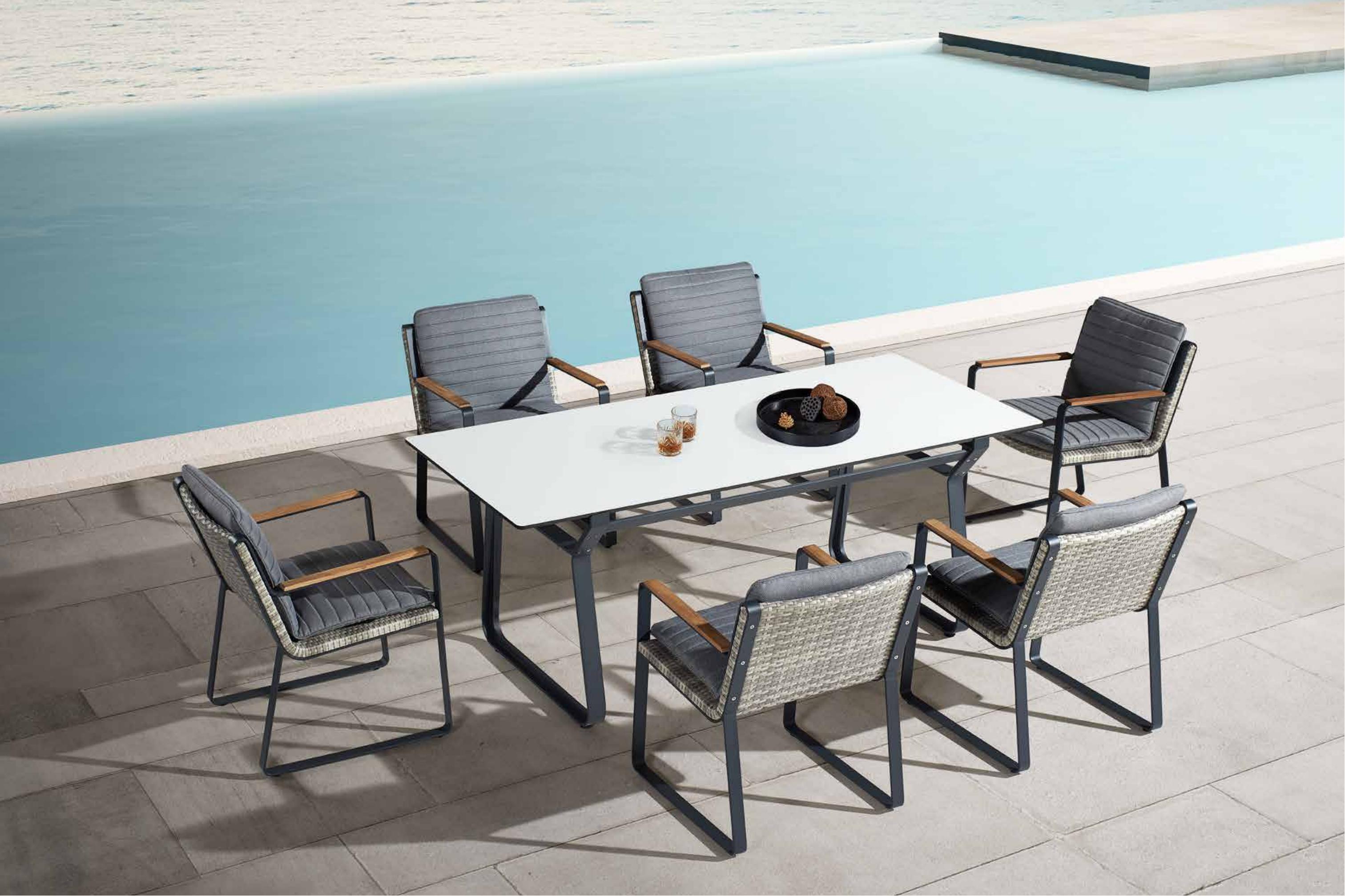 卡拉克户外休闲系列的设计宗旨在于从简单结构中保持特有舒适度。 齐平的管与管的衔接,没有丝毫焊接痕迹,这在户外安博网页版的铝结构中鲜少能见。 卡拉克户外休闲系列的另一个独特之处在于,细腻的编织结构被金属外管紧紧相拥,这一工艺在同行业安博网页版是具有创造性的应用。 卡拉克户外休闲系列,他是户外安博网页版工艺的凸显臻品,搭配上车花条纹形的软包,是您尊享惬意户外阳光的极佳选择。