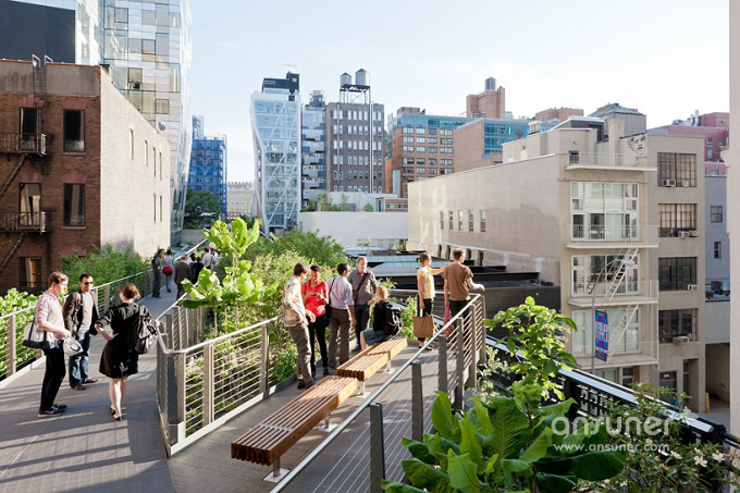 纽约著名的High Line park(高线公园)是一个由废弃的高架铁路货运线改造而成的公园。比利时设计团队Going East,将自己在这座公园的游历体验化作设计灵感,完成了安特卫普Fosbury & Sons联合办公空间的设计。