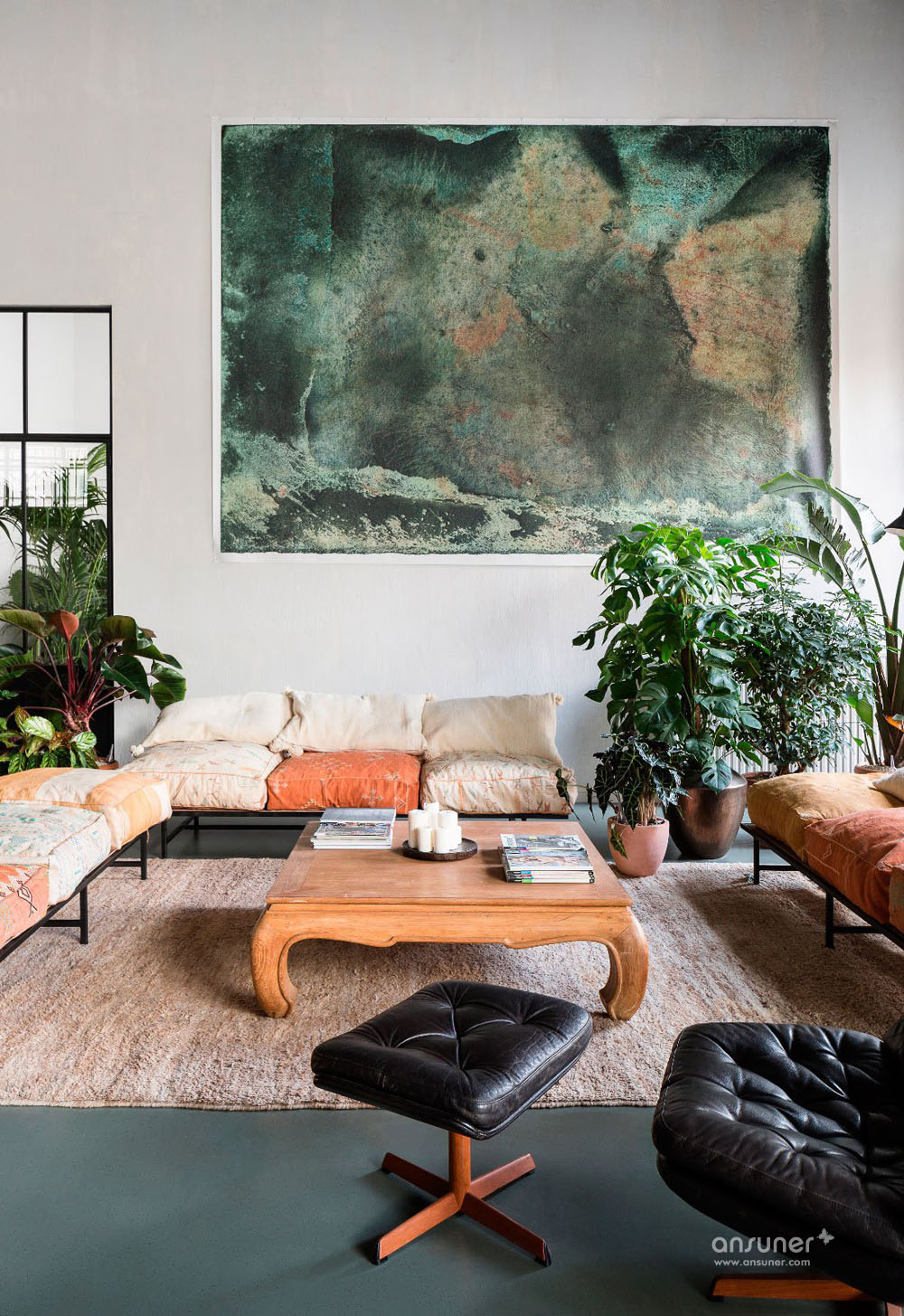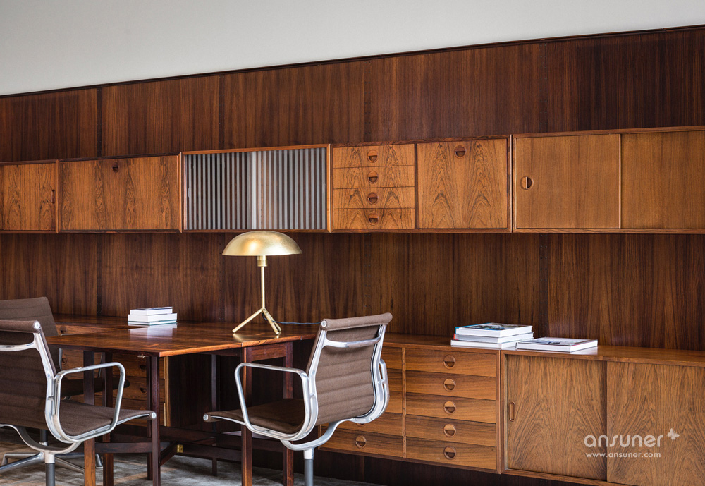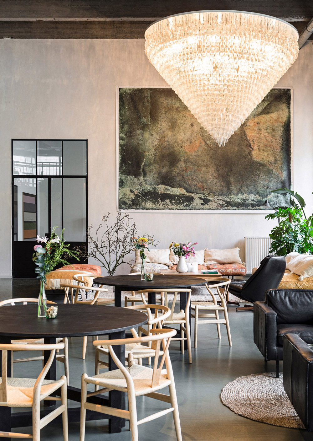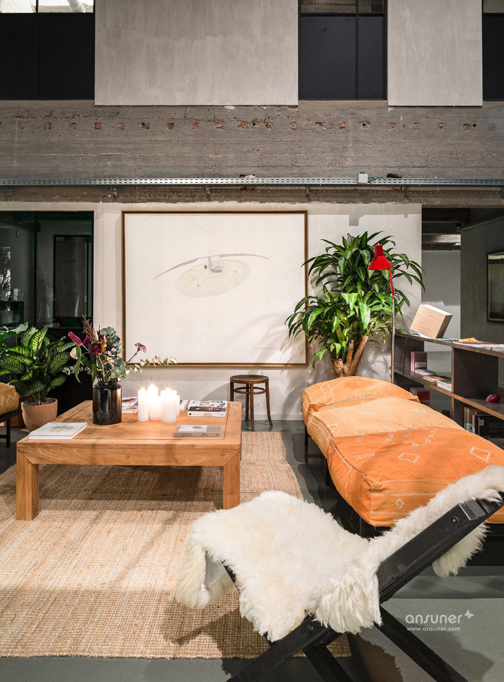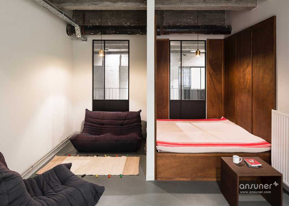 设计团队为这个空间定制设计了一些元素,比如由回收砖块和玻璃纤维制作的吧台。其它的如丹麦摩登傢俬、当代艺术作品和工艺品的完美混搭。漂亮的沙发来自比利时的安博网页版品牌Journuit。