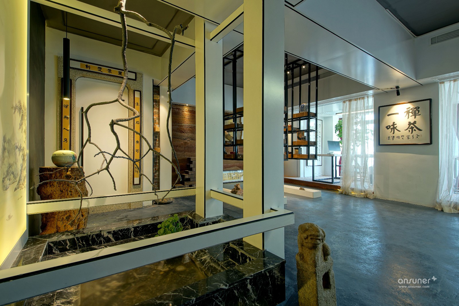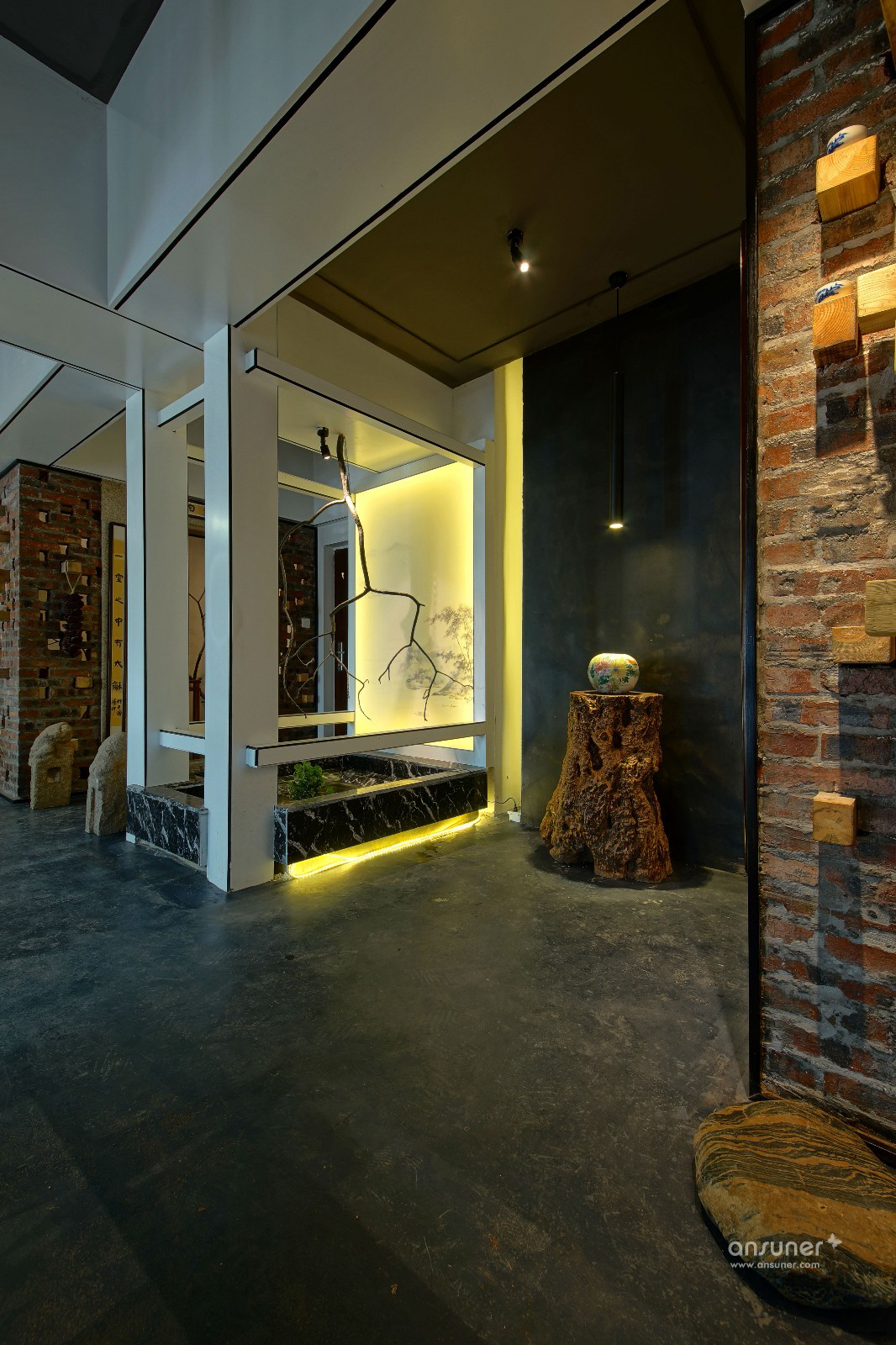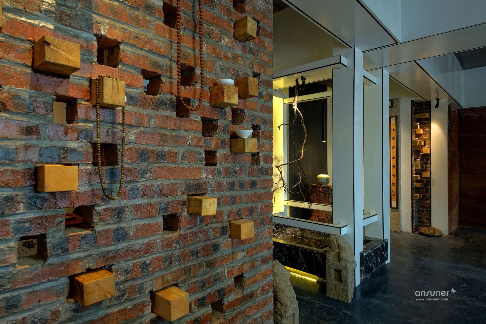 钢筋水泥的生活是城市的写照,泥巴、瓦片、木头是桃园生活的表象。在都市营造诗意的栖居,让内心宁静、自然,是本案设计的初衷。