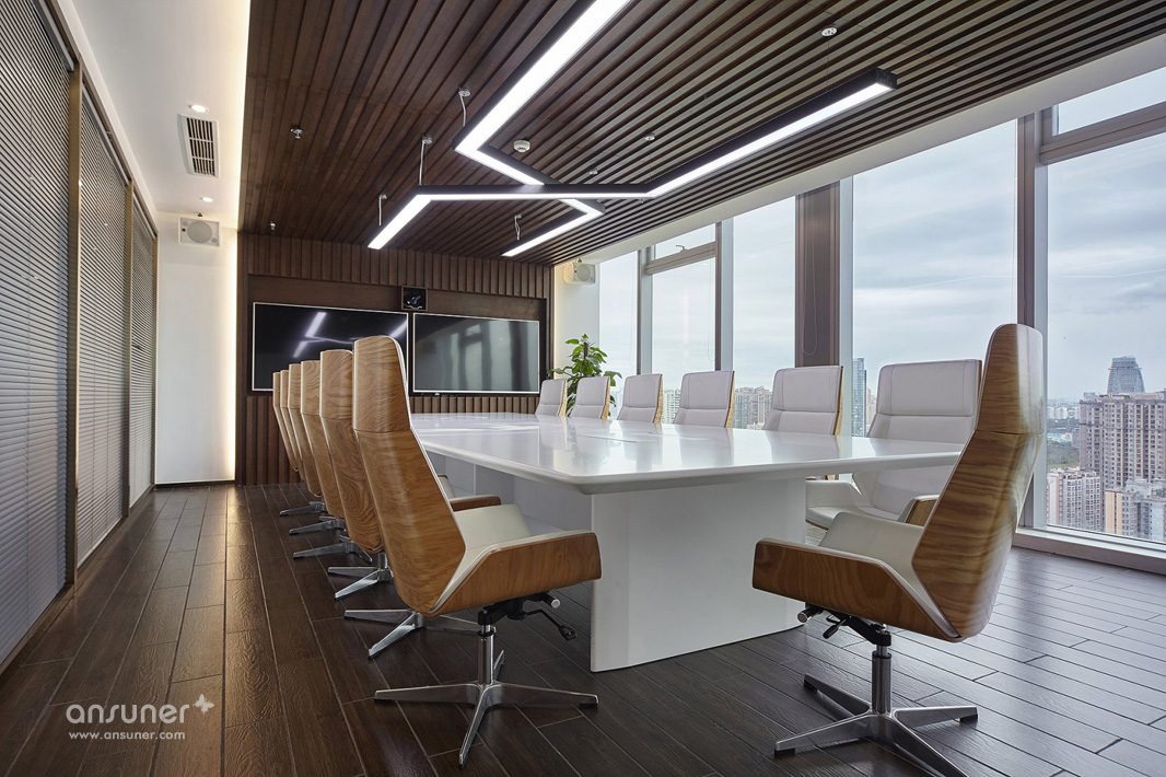 设置双屏,及场景电话会议。临窗的宽阔大空间,采光环境一流。