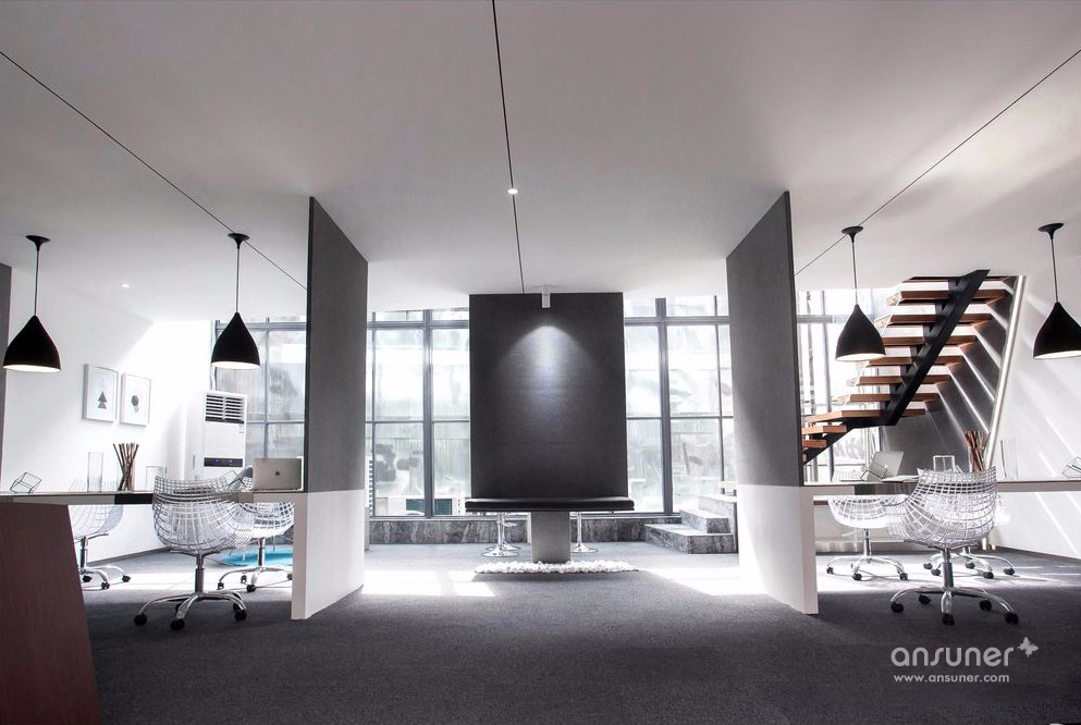 【创意理念】一个属于年轻人创业的工作环境应该具有时尚的气氛,以黑白灰的主色调,充足的阳光,极简洁的风格和活泼的氛围。