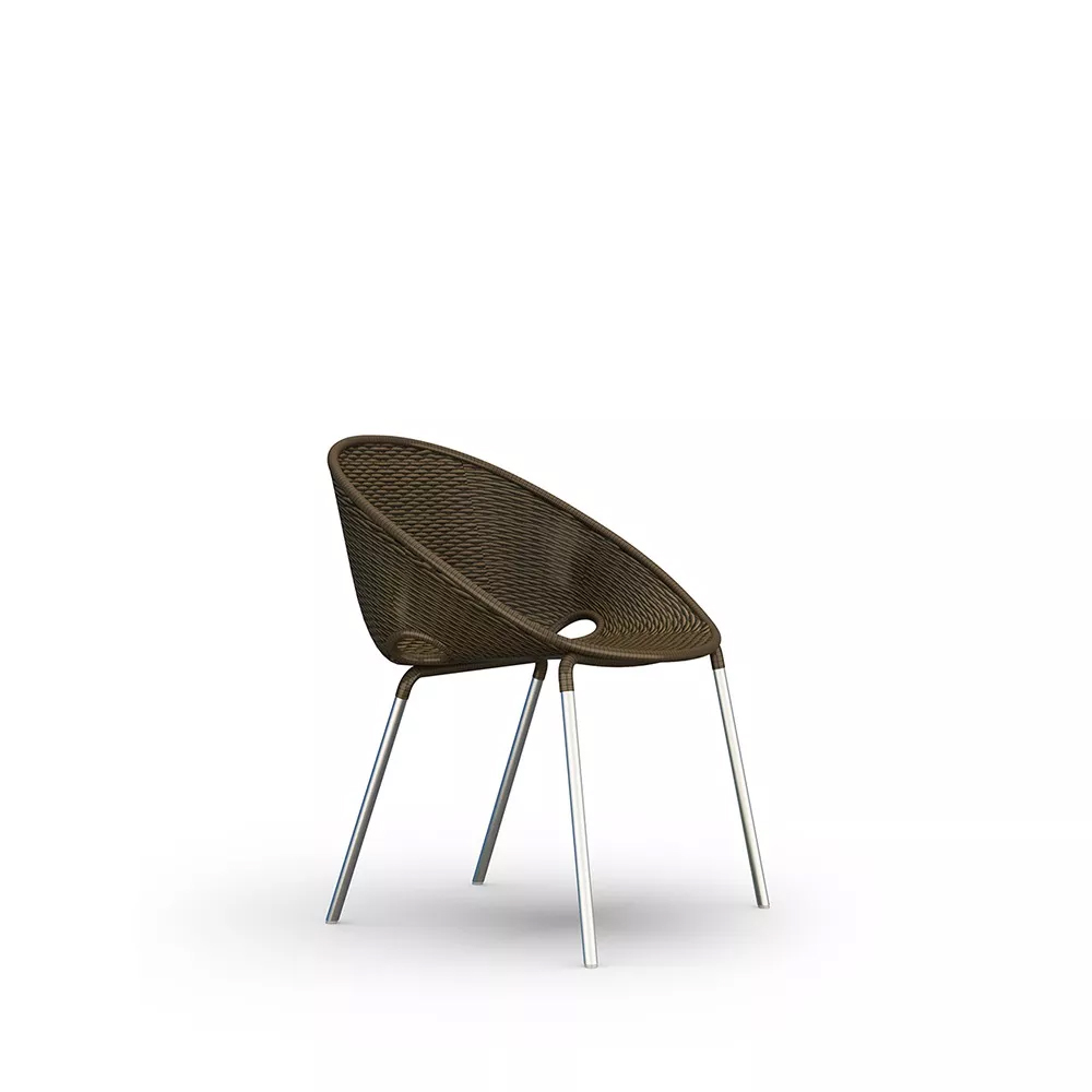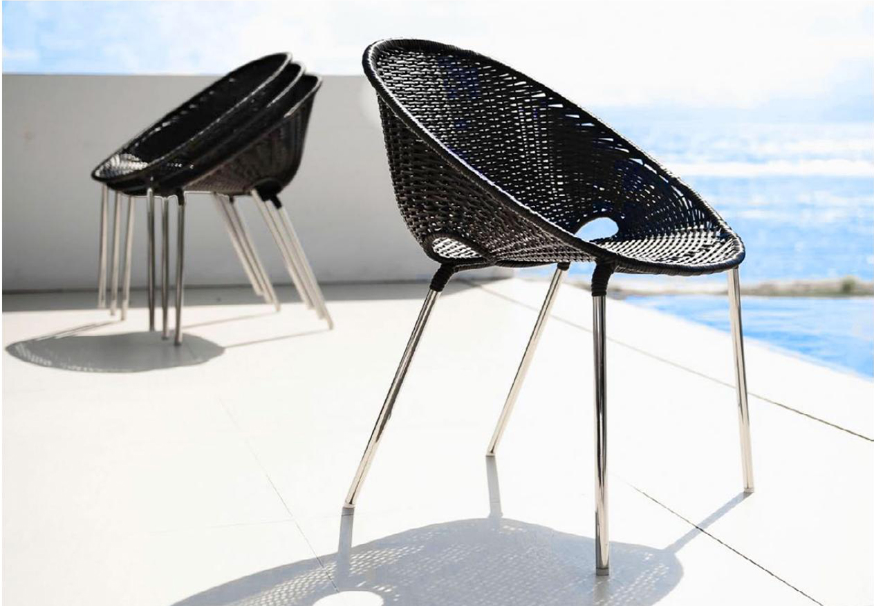 小酒窝扶手椅上的标志性凹痕为户外空间增添了一份微妙的厚脸皮。这些可叠放的椅子由聚乙烯和不锈钢制成,有青铜色。