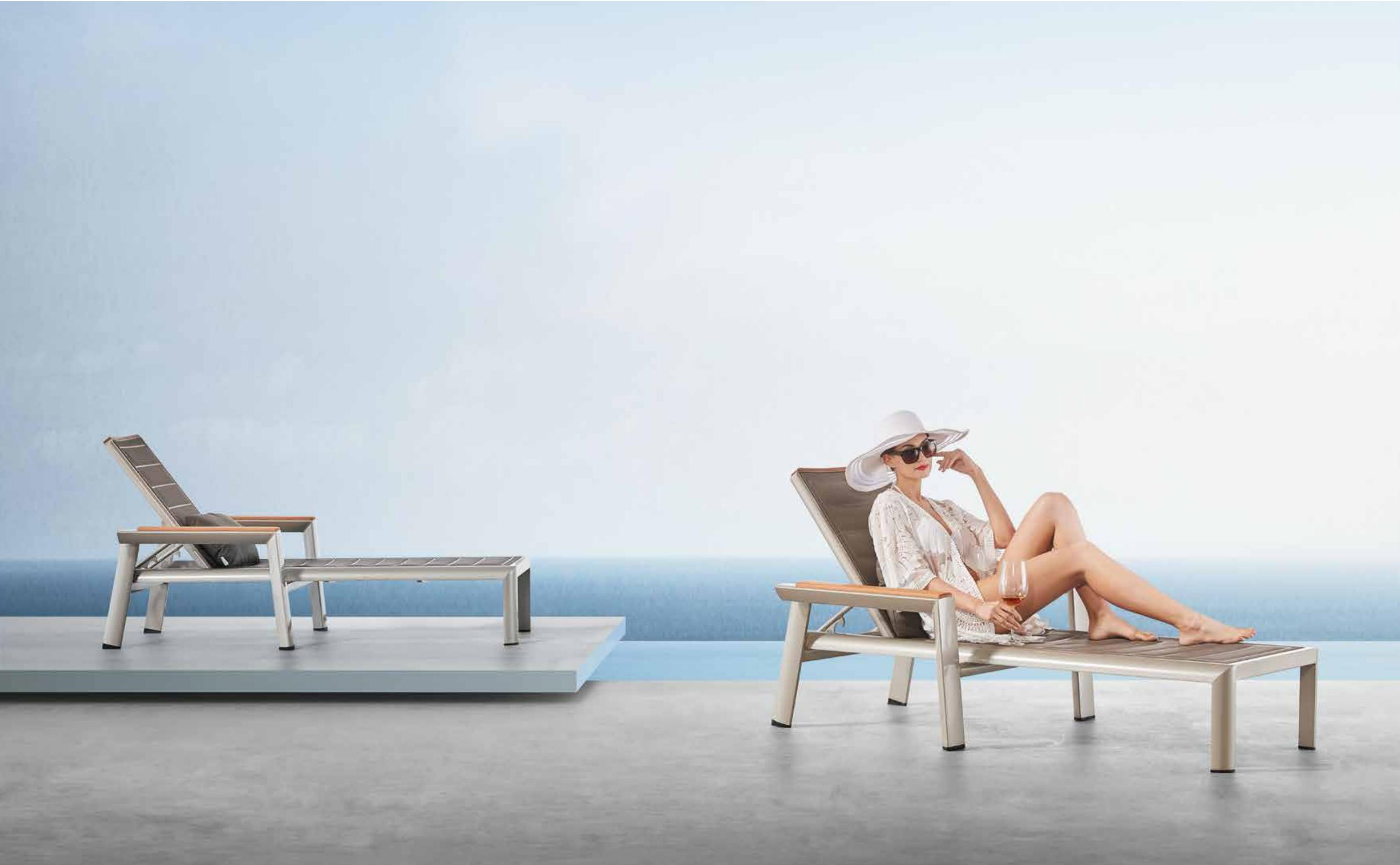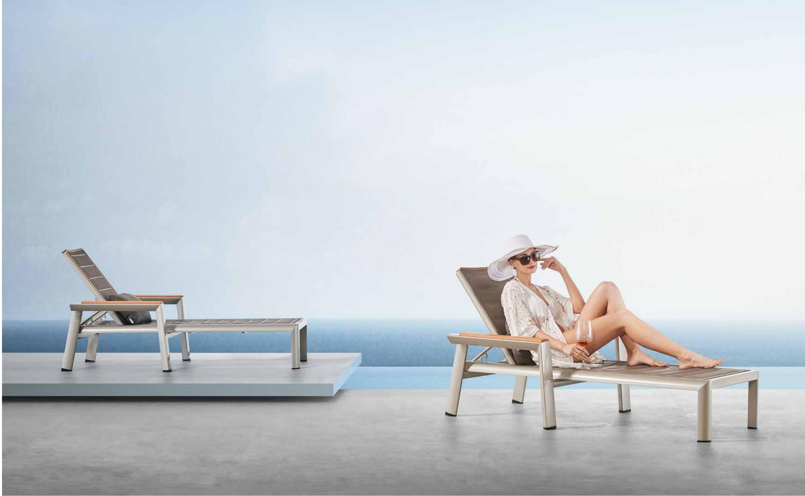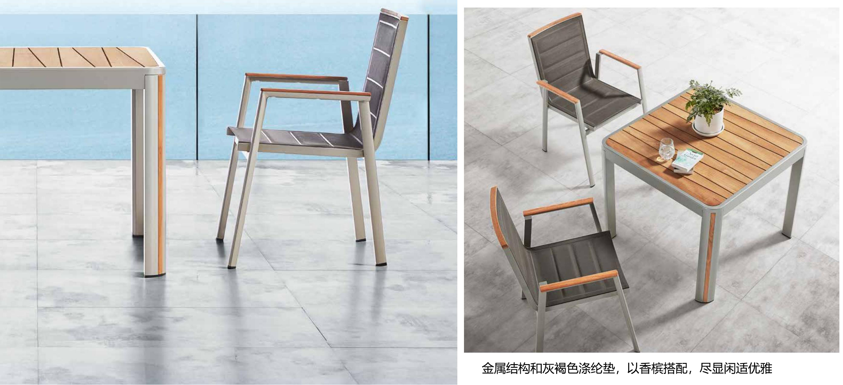 设计灵感:1970年AMC V8 肌肉车,经典中的经典 “经典”---设计灵感是经典中的经典,整体铝镁硅合金外框像极了肌肉车的构造,充满力量; “完美”---横向的热熔缝制处理和竖向的精密线条做点缀,完美结合 “高级”---外框架表面喷涂高级香槟色AkzoNobel牌粉末,坐背体采用双层夹棉原理,令产品立体有充满动感 “多元”---系列产品配套齐全,沙发、餐桌椅、转椅、躺床、高吧餐桌椅、飘床等,满足您的不同生活需求 瑞士手表有极高精准度,而日内瓦系列由此得名。人们一提到户外安博网页版,往往联想到更多的是藤艺的或者是铸铝的款式,如今随着现代设计潮流的繁荣,金属外露的设计也变得愈来愈紧俏。 日内瓦系列的每个产品细节,就像手表一样,都做到了极致,令人无可挑剔。纯天然柚木扶手和桌面,触感真切,随时随地感受大自然。不规则的木板排版,让人耳目一新,记忆犹深。坐背体采用双层夹棉原理,热熔的缝制处理令产品立体又充满动感。 日内瓦系列选用高级香槟色粉末喷制金属主体,灰褐色特斯林面料制作软体结构,当香槟味遇上Taupe色,仿佛陷入纯情,一幕幕经典的爱情故事再次映入眼睑。 日内瓦系列配套有沙发、多人位餐台餐椅、高吧台和吧椅、组合沙发、旋转休闲椅、沙滩躺床及飘床,应有尽有,满足您不同的生活需求。