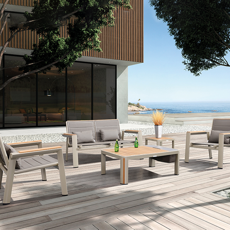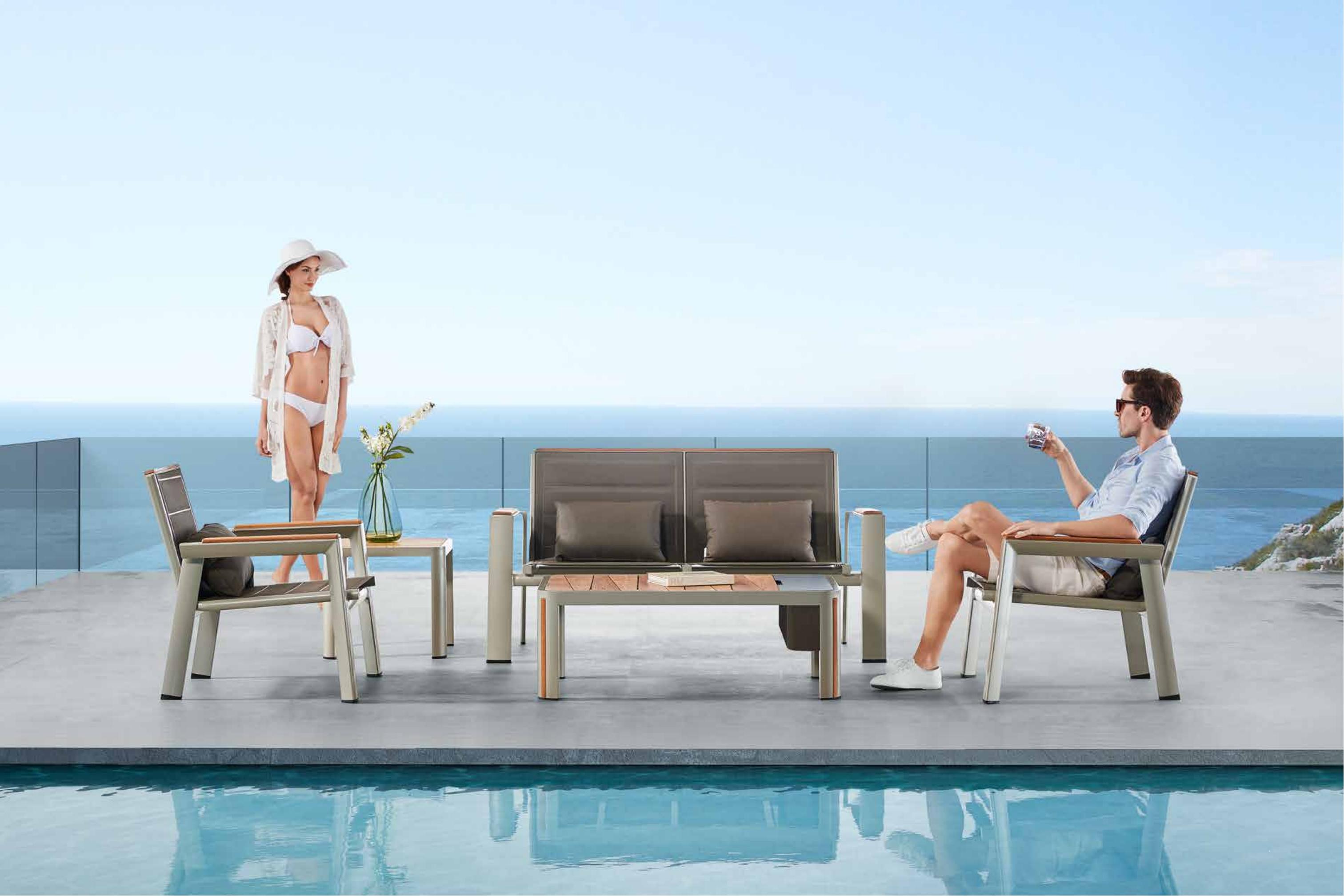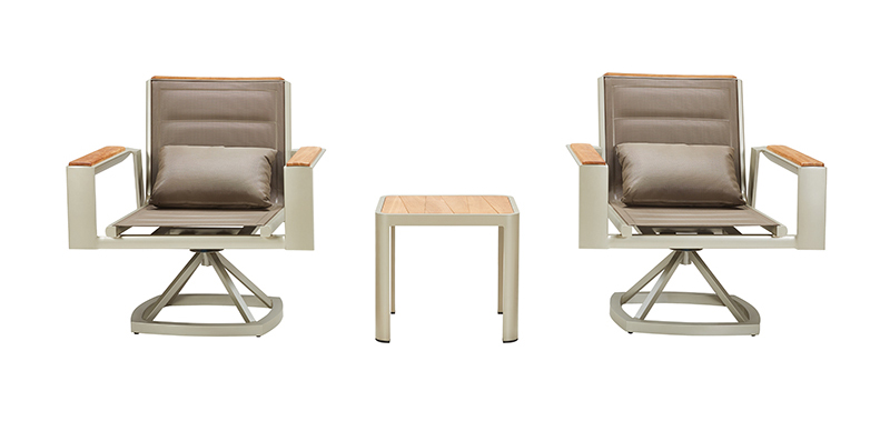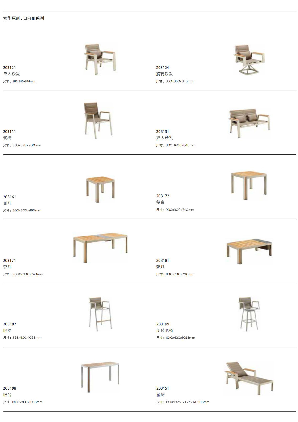设计灵感:1970年AMC V8 肌肉车,经典中的经典 “经典”---设计灵感是经典中的经典,整体铝镁硅合金外框像极了肌肉车的构造,充满力量; “完美”---横向的热熔缝制处理和竖向的精密线条做点缀,完美结合 “高级”---外框架表面喷涂高级香槟色AkzoNobel牌粉末,坐背体采用双层夹棉原理,令产品立体有充满动感 “多元”---系列产品配套齐全,沙发、餐桌椅、转椅、躺床、高吧餐桌椅、飘床等,满足您的不同生活需求 瑞士手表有极高精准度,而日内瓦系列由此得名。人们一提到户外安博网页版,往往联想到更多的是藤艺的或者是铸铝的款式,如今随着现代设计潮流的繁荣,金属外露的设计也变得愈来愈紧俏。 日内瓦系列的每个产品细节,就像手表一样,都做到了极致,令人无可挑剔。纯天然柚木扶手和桌面,触感真切,随时随地感受大自然。不规则的木板排版,让人耳目一新,记忆犹深。坐背体采用双层夹棉原理,热熔的缝制处理令产品立体又充满动感。 日内瓦系列选用高级香槟色粉末喷制金属主体,灰褐色特斯林面料制作软体结构,当香槟味遇上Taupe色,仿佛陷入纯情,一幕幕经典的爱情故事再次映入眼睑。 日内瓦系列配套有沙发、多人位餐台餐椅、高吧台和吧椅、组合沙发、旋转休闲椅、沙滩躺床及飘床,应有尽有,满足您不同的生活需求。