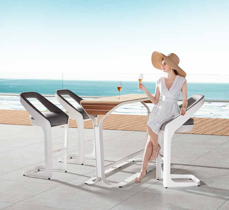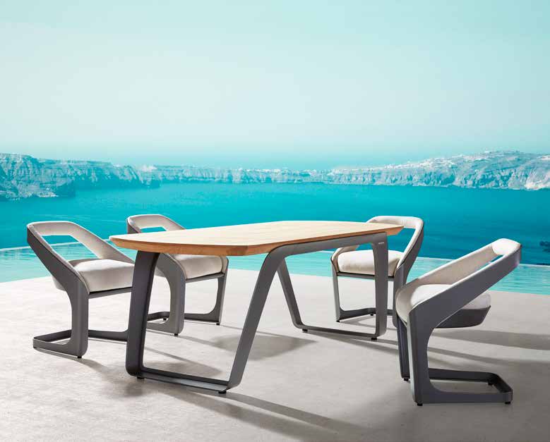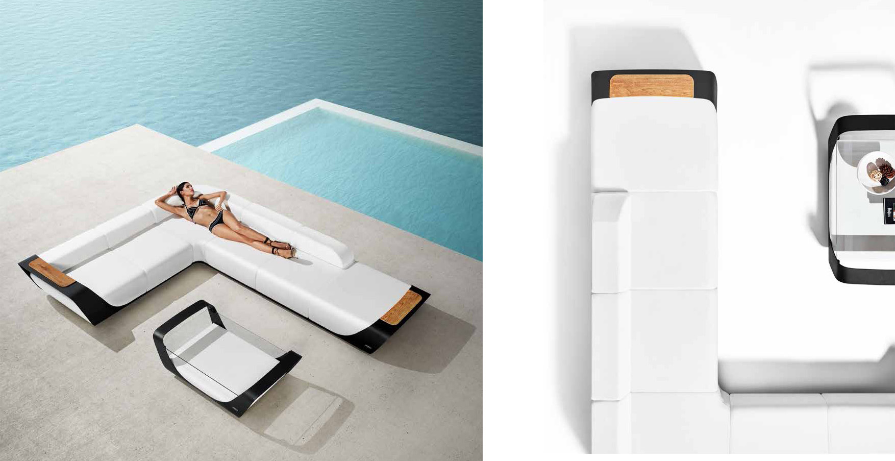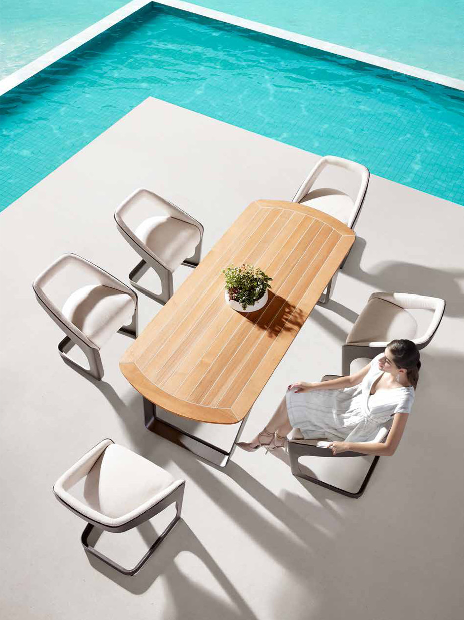 设计灵感:动感的海浪 “奢华”---奢华原创独一无二 “革新”---6mm铝板整体成型和无缝焊接+TIGER牌喷粉+纯天然A级缅甸柚木,搭配顶级环保用材,技术革新 “优美”---游艇SUNBRELLA 布艺,超厚快干棉异形切割,体现完美形态,满足全天候的户外条件 “多变”---30多种搭配组合,精选3种主流颜色,室内室外搭配随心所欲 “细致” ---防水布罩,多功能卡扣,防霉里布,蜂窝纸箱,细致入微,解决您的后顾之忧