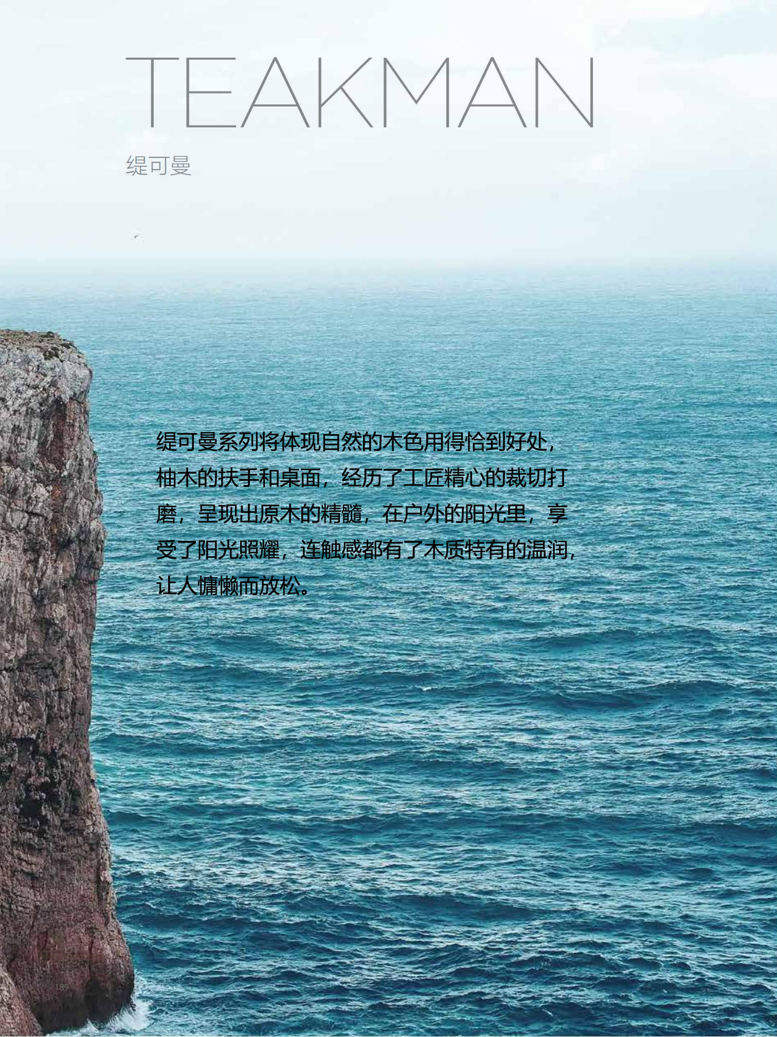 缇可曼户外休闲系列将体现自然的木色用得恰到好处,柚木的扶手和桌面,经历了工匠精心的裁切打磨,呈现出原木的精髓,在户外的阳光里,享受了阳光照耀,连触感都有了木质特有的温润,让人慵懒而放松。