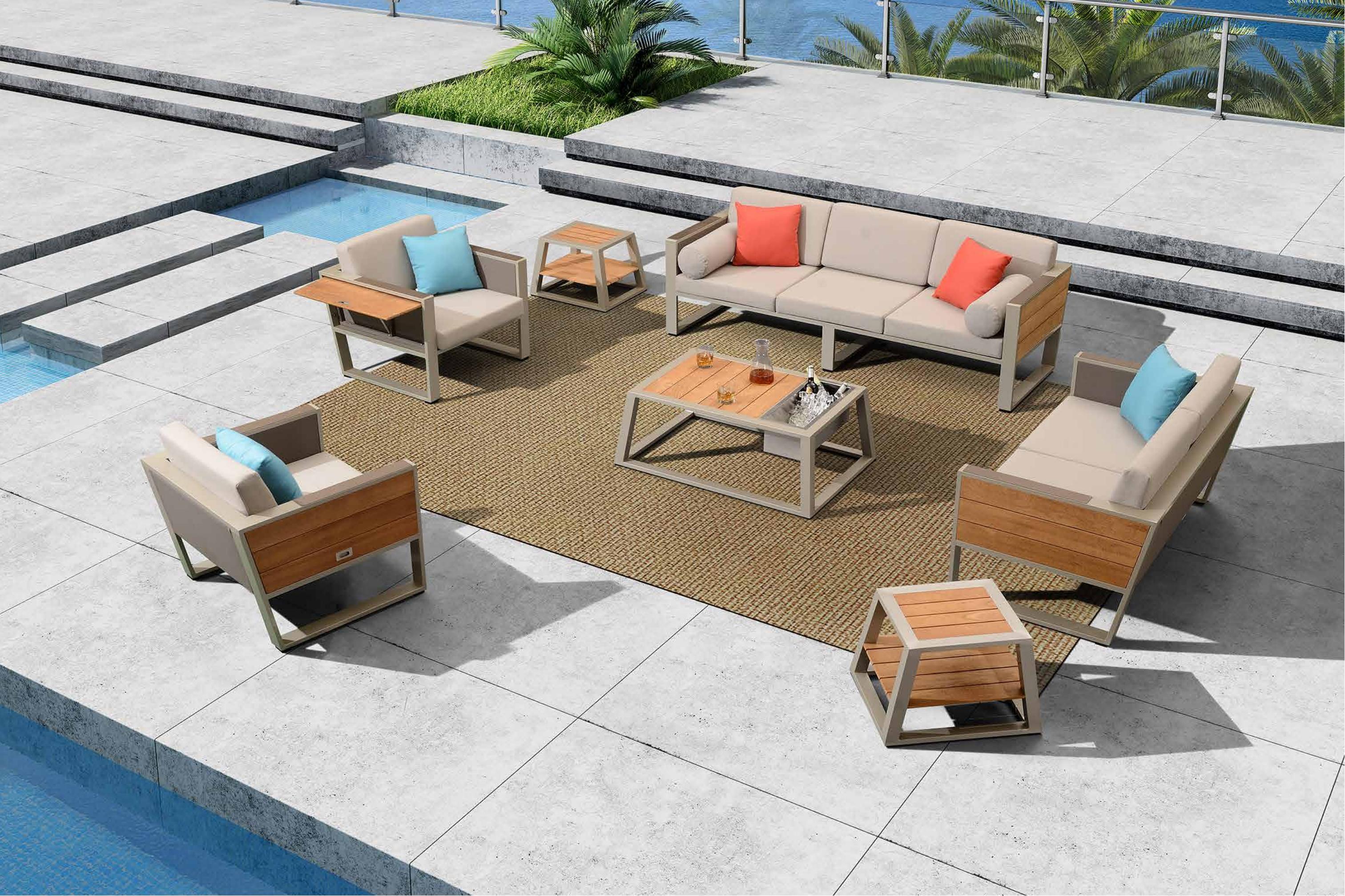 设计灵感:豪华游艇 “贵族”---极具质感的金属外框搭配天然缅甸柚木,像游艇一般体现独有的英朗贵族气质; “功能”---沙发扶手侧板具备半自动可收放功能,单向阻尼系统增加产品安全性和静音性,像游艇夹板一般给客人带来多一份享受的空间 “精品”---约克系列自面世以来一直是悍高最受青睐的设计之一,引爆全球。 约克户外休闲系列打破常规的户外安博网页版设计,不再是纯粹的藤编风格。由天然柚木、舒适特斯林、及白色外框巧妙搭配,衬托出简约但却充满质感的视觉效果。 天然柚木配以优质柔软海绵,给人们带来足不出户即可享受到的舒适户外休闲生活。沙发右边侧板采 用半自动可收放的柚木侧板,使产品空间利用最大化;茶几部位增加冰桶,提升用户户外体验。 约克户外休闲系列自面市以来一直是最受青睐的设计之一,全球共享。现代设计元素的应用,令产品充满青春 阳光的气息。与现代建筑风格融为一体的立体感,York 是全球各大豪华酒店的不二之选。